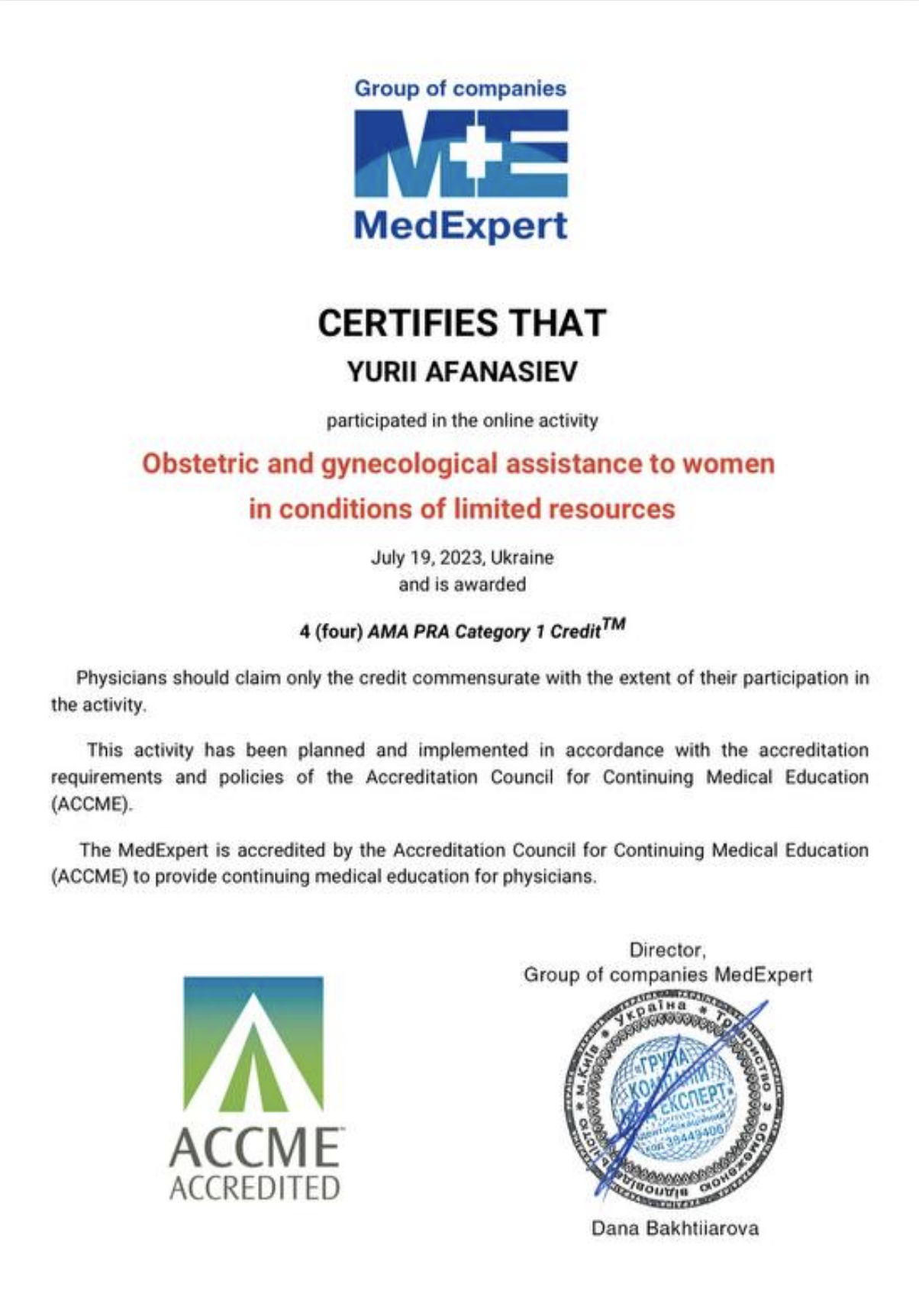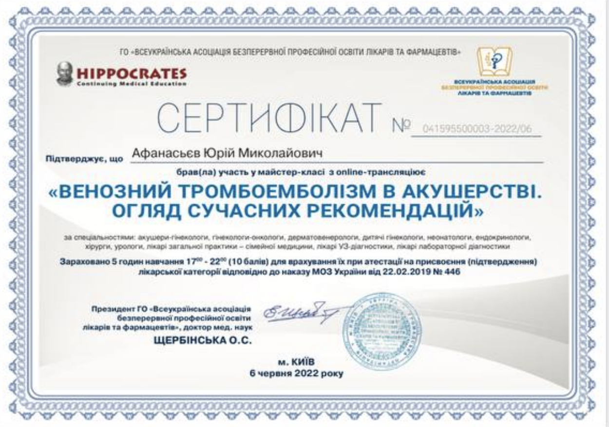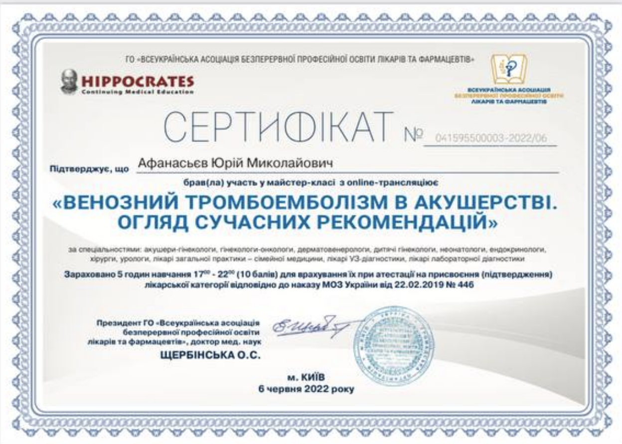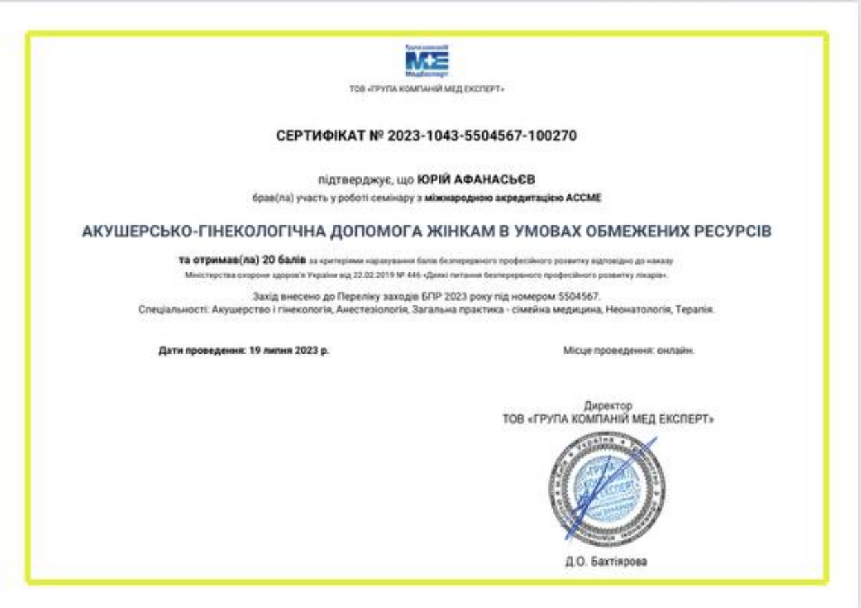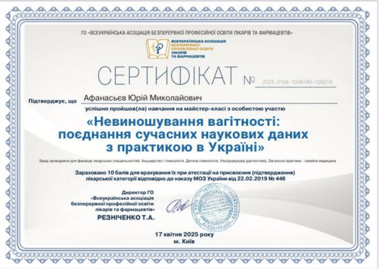 Хірург акушер-гінеколог вищої кваліфікаційної категорії, лікар УЗД діагностики