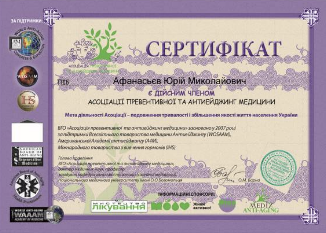 Афанасьєв Юрій Миколайович -професіонал своєї справи із сучасними та надійними методами лікування.