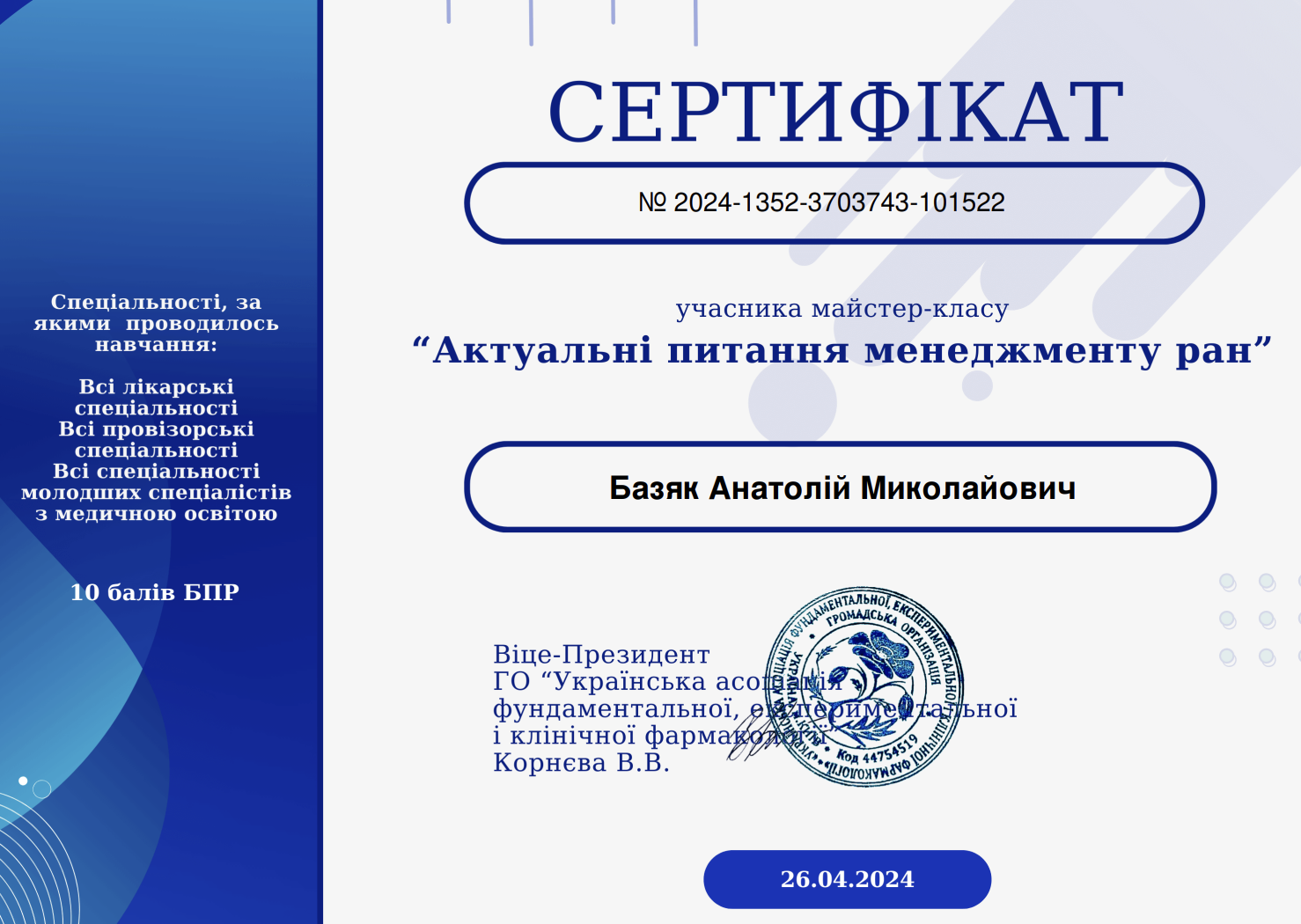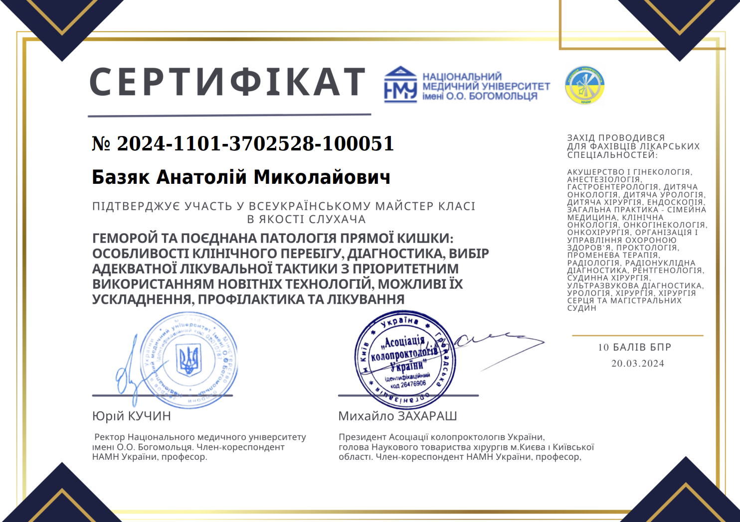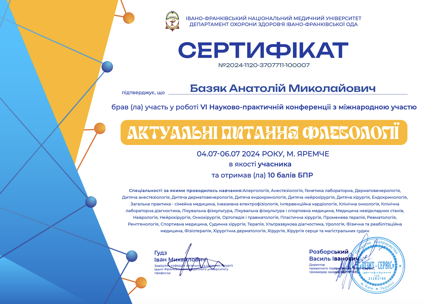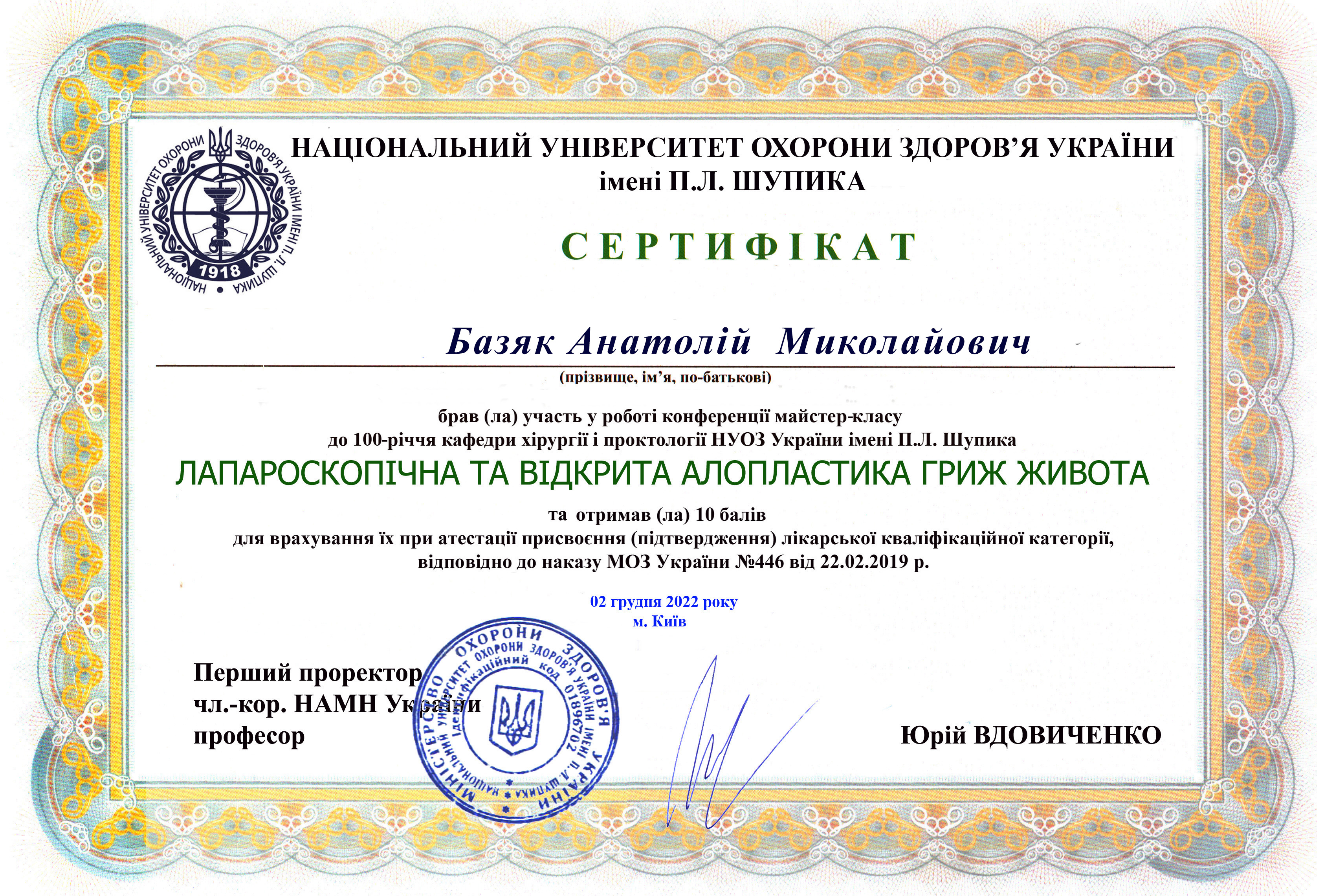 Керівник медичного центру, лікар-хірург, флеболог, онкогінеколог вищої категорії