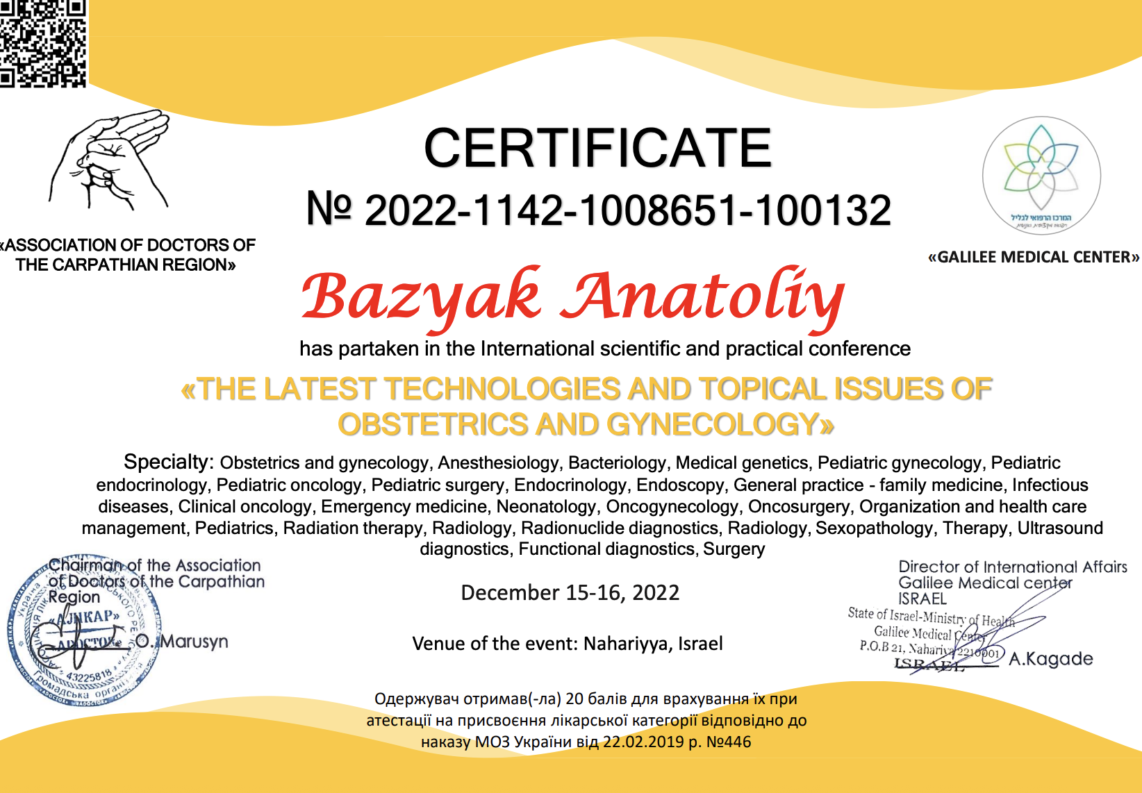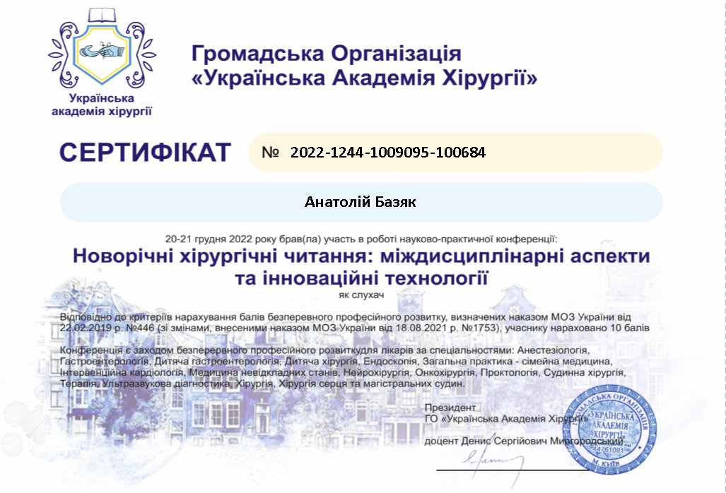 • Практичний досвід у хірургії — понад 33 роки, флебології – 30 років, онкогінеколог – 20 років.