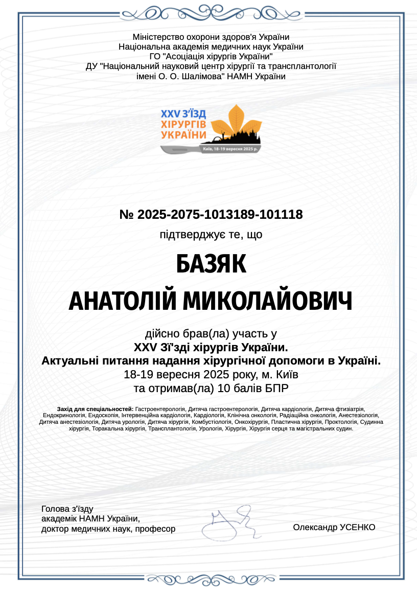Анатолій Миколайович практикує індивідуальний підхід до кожного пацієнта, приділяючи особливу увагу точній діагностиці, безпеці оперативного втручання та якісному післяопераційному відновленню. У роботі керується принципами доказової медицини та сучасними стандартами лікування.