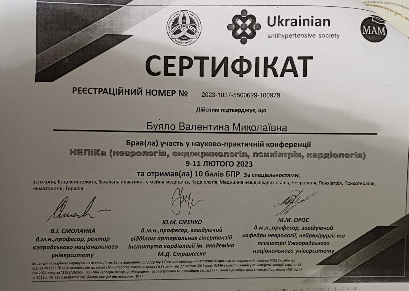 2023 році брала участь у роботі Науково-практичної конференції <Артеріальна гіпертензія – коморбідність і супутні захворювання