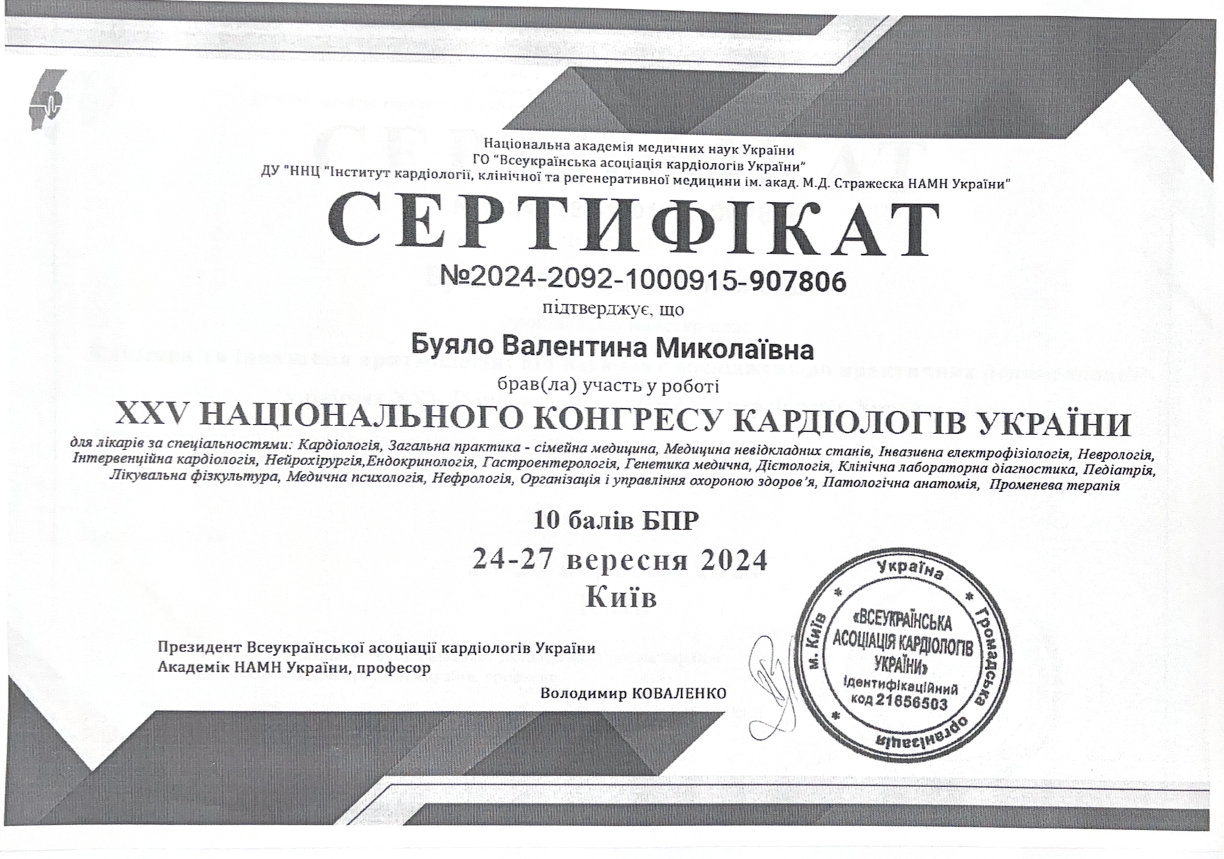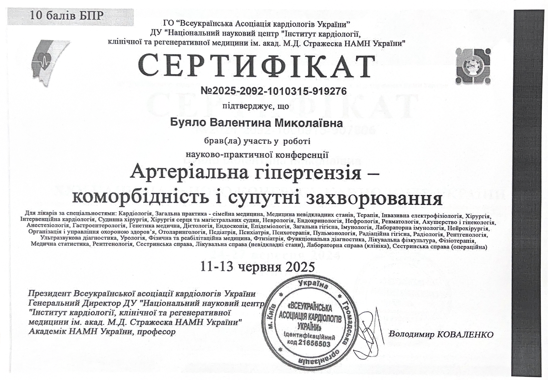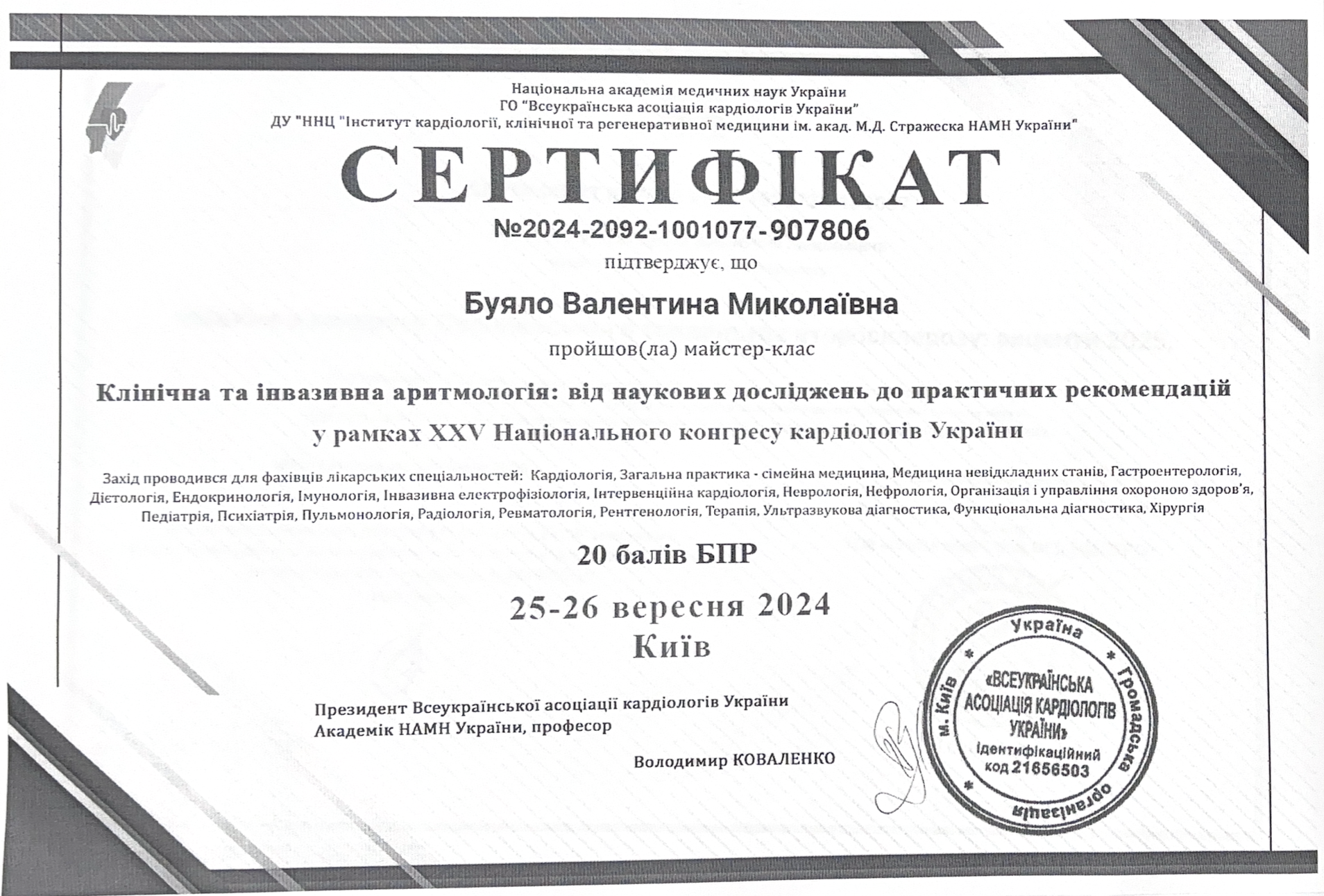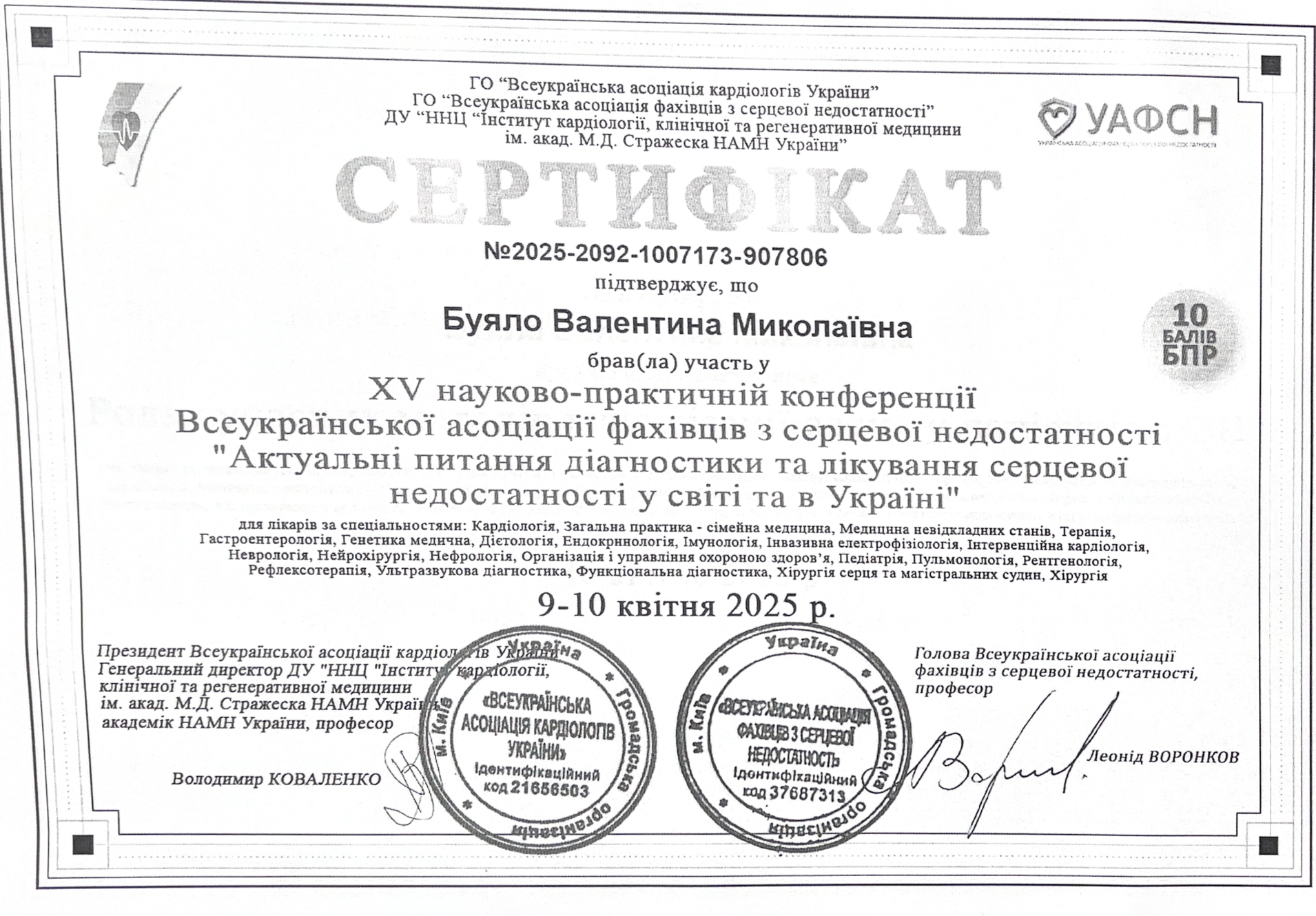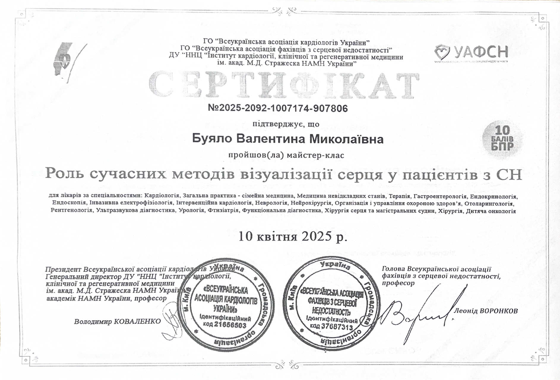 2023 році підвищення кваліфікації НФаУ Інститут підвищення кваліфікації спеціалістів фармації – Сучасні підходи до фармакотерапії серцево – судинних захворювань.