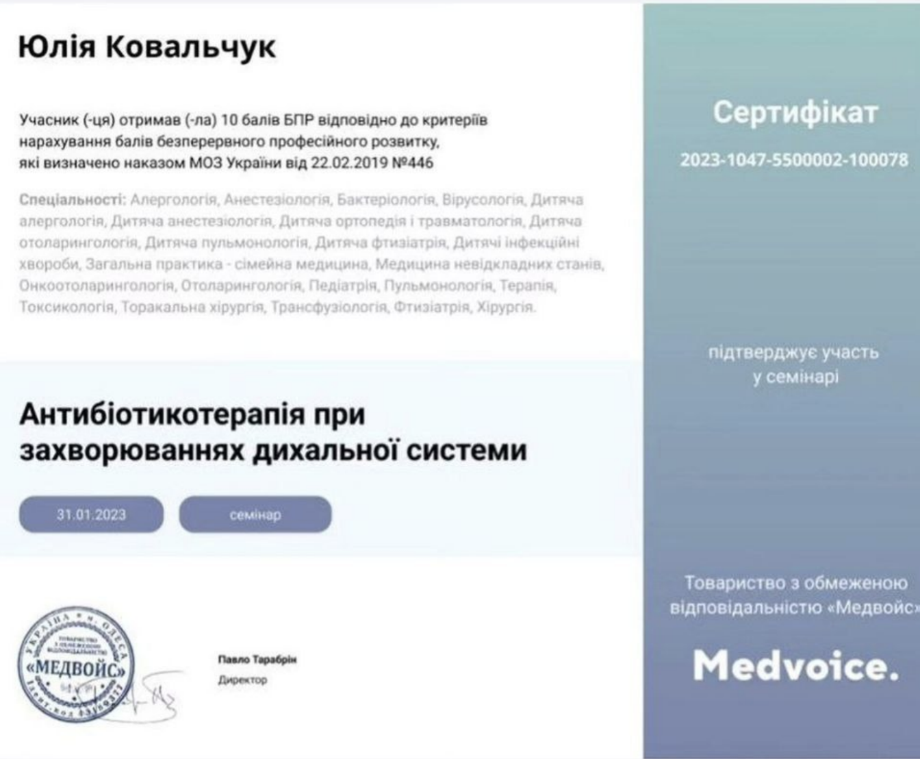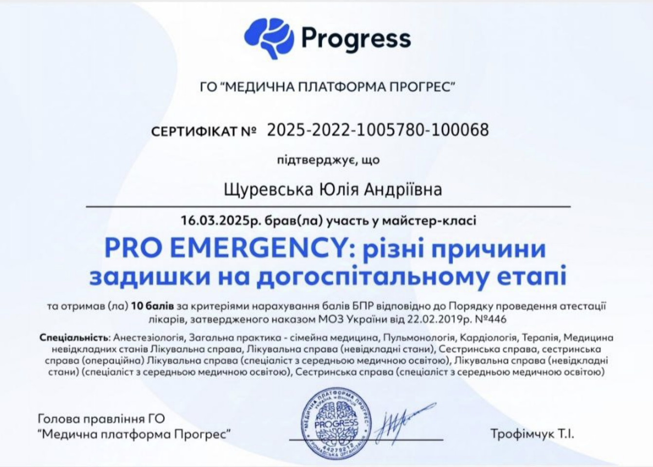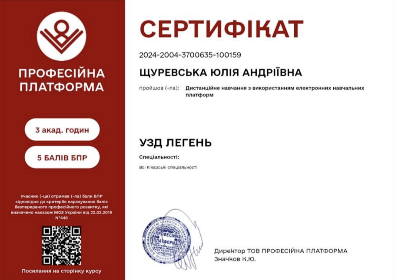 Працювала з 2018 року в Міській лікарні #2 в приймальному відділенні стаціонару і отримала неймовірний досвід роботи з різнопрофільними важкими хворими, а також з 2023 прийом в амбулаторії #3