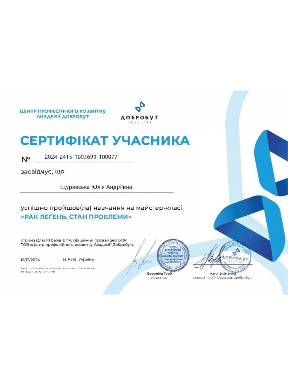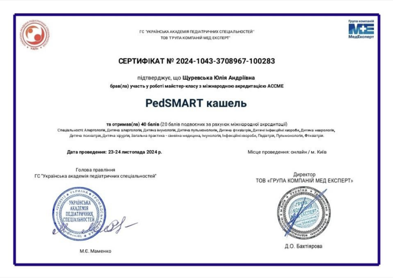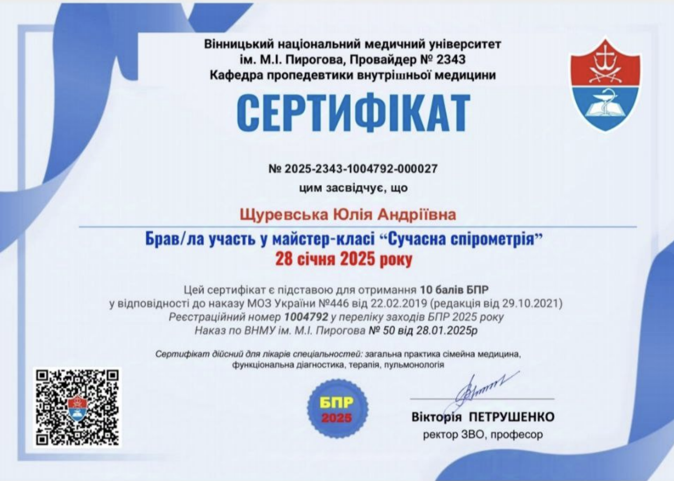 Працювала з 2018 року в Міській лікарні #2 в приймальному відділенні стаціонару і отримала неймовірний досвід роботи з різнопрофільними важкими хворими, а також з 2023 прийом в амбулаторії #3