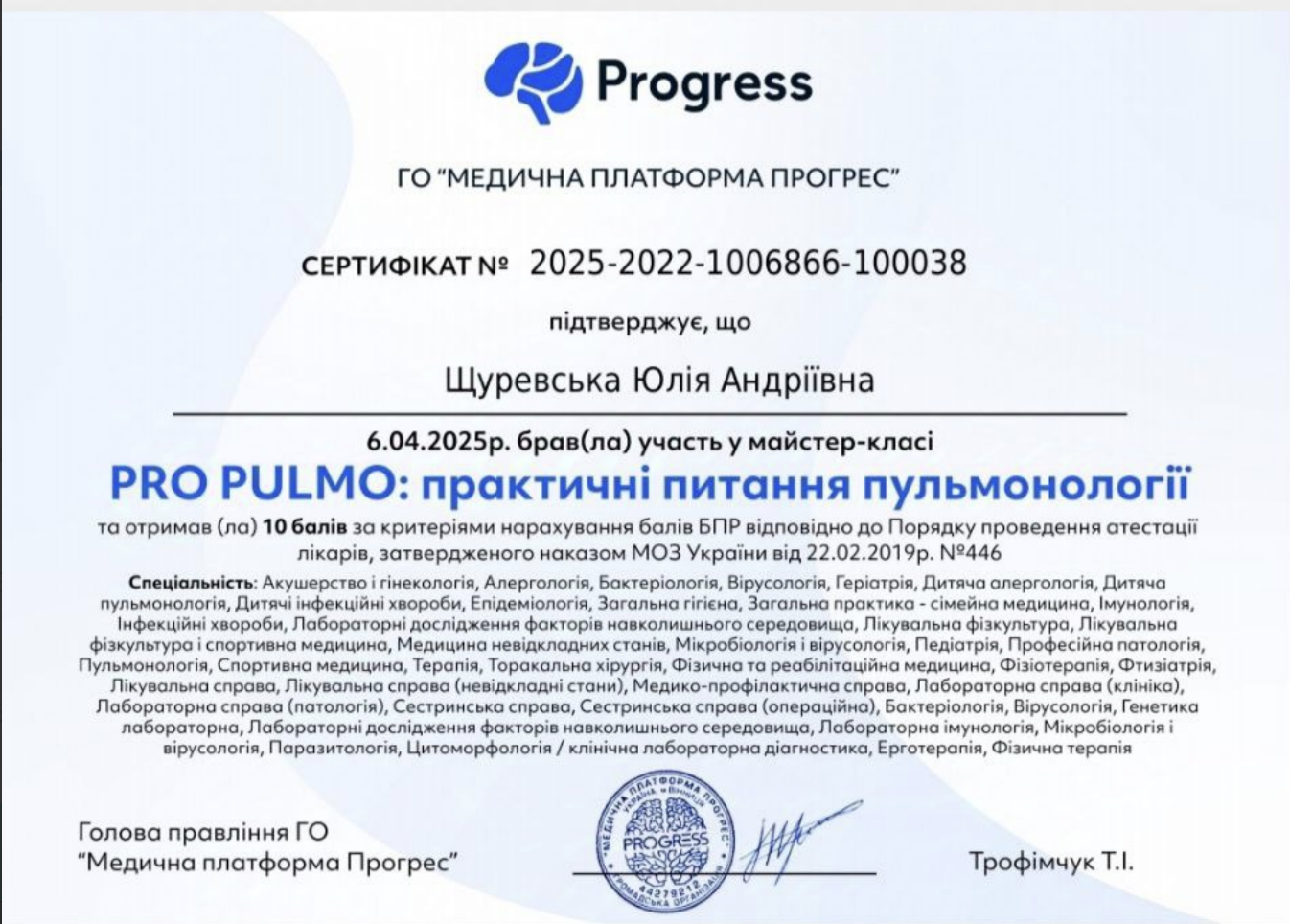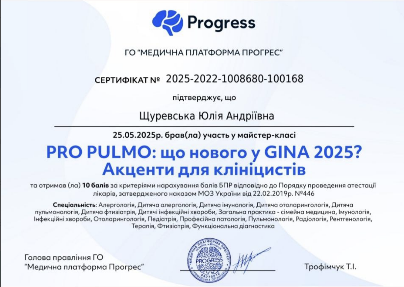 Кваліфікація терапевта пульмонолога спрямована на роботу з такими патологіями, як: