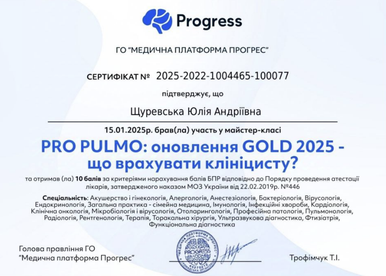 Я лікарка-терапевт і пульмонолог. У медицині для мене багато що починається з дихання — з того моменту, коли організм ще справляється сам, і з того, коли йому вже потрібна допомога. Легені рідко хворіють окремо: задишка, кашель, слабкість майже завжди пов’язані з роботою серця, судин, імунної системи, обміном речовин, перенесеними інфекціями, способом життя.